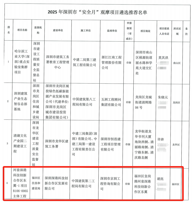 会上,中建二局、深港科创公司有关领导分别致辞。与会人员观看了“安全生产月”活动主题宣传片,项目团队作了安全管理经验做法介绍,深圳市福田区住房和建设局、深港科创公司有关领导为农民工督察队、青年安全示范岗授旗。大家还参观了河套深港科技创新合作区东翼-1项目施工现场,对智慧展厅、人本安全、科技兴安、智领卓越、智建未来等5大展区、11大分区进行集中观摩。